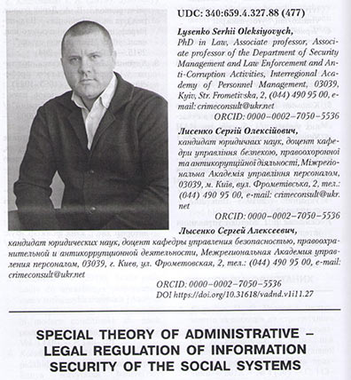 SPECIAL THEORY OF ADMINISTRATIVE - LEGAL REGULATION OF INFORMATION SECURITY OF THE SOCIAL SYSTEMS